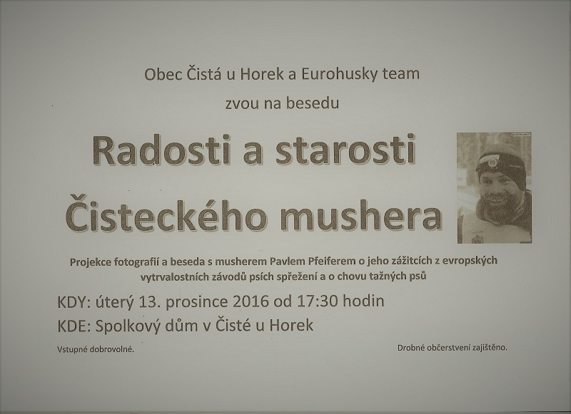 Úvod > Obec > Aktuality > Beseda s musherem Pavlem Pfeiferem