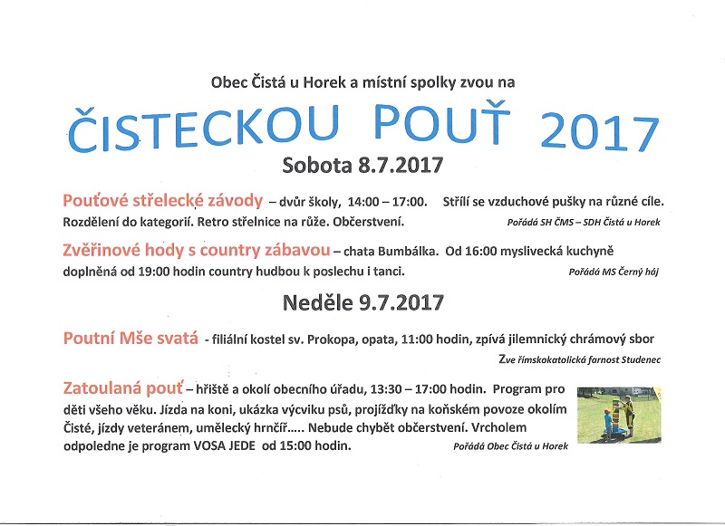 Úvod > Obec > Aktuality > Čistecká pouť 2017