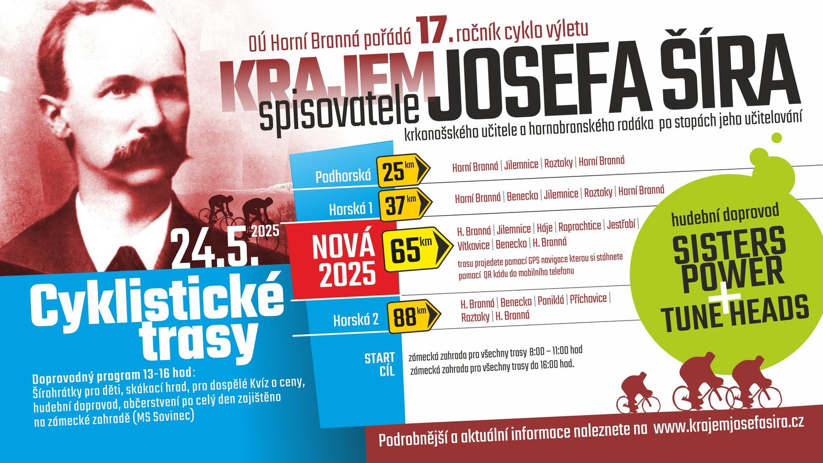 Obec Horní Branná Vás zve ve stejný den na 17. ročník cyklovýletu "Krajem spisovatele Josefa Šíra" krkonošského učitele a hornobranského rodáka po stopách jeho učitelování.