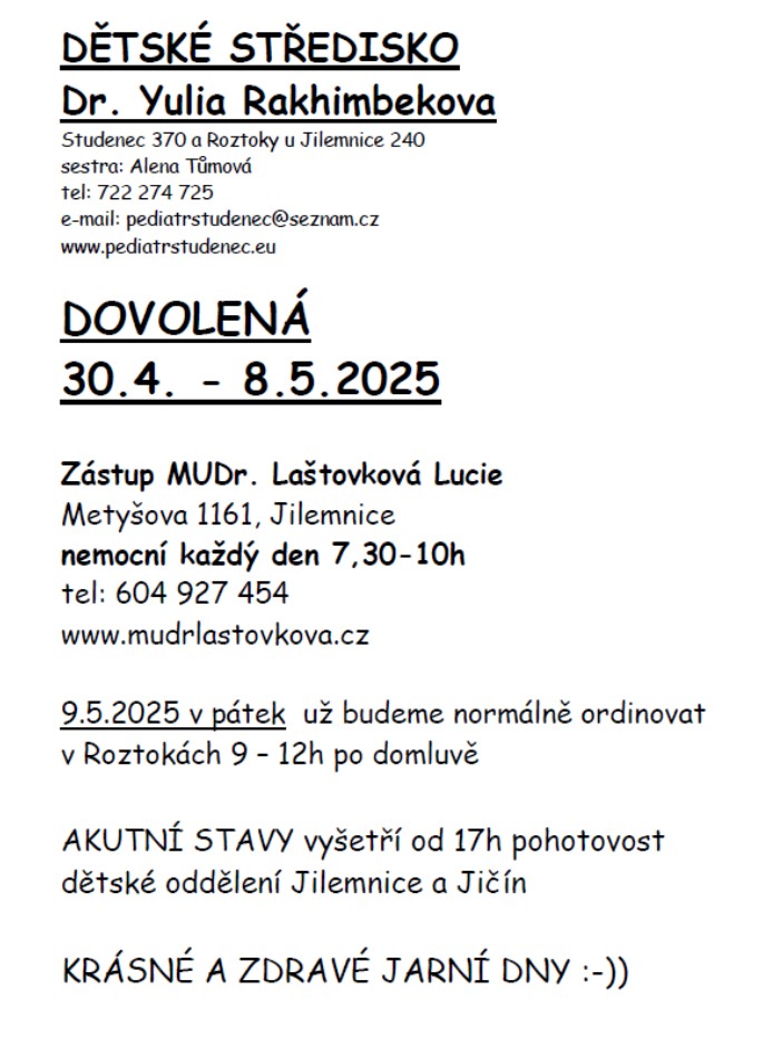 Úvod > Obec > Aktuality > Dětská lékařka hlásí dovolenou