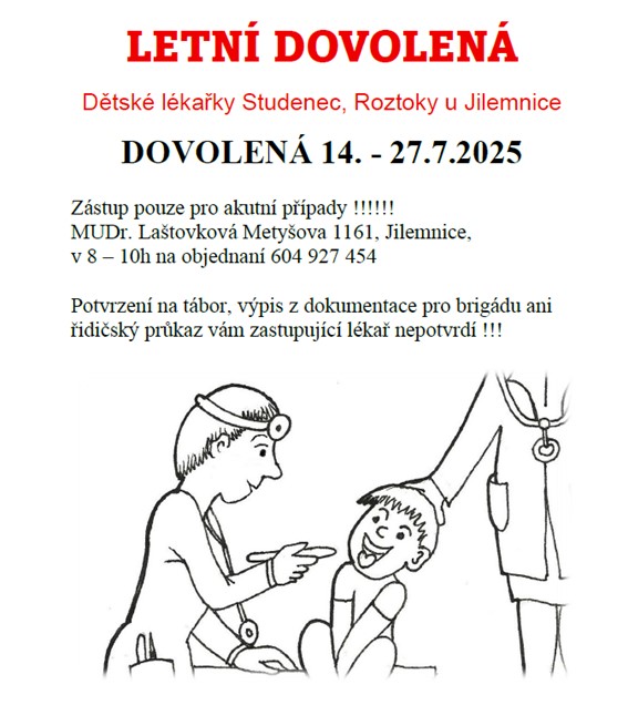 Úvod > Obec > Aktuality > Dovolená o prázdninách 2025 - dětská lékařka