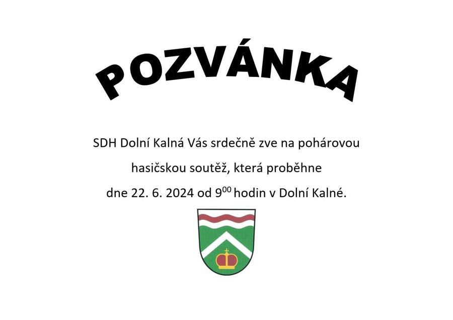 Hasiči v Dolní Kalné pořádají v sobotu 22. června 2024 v areálu autokempu tradiční soutěž. Účastní se i naši hasiči, tak je můžete podpořit. Dopoledne soutěž dětí, po nich dospělí. Občerstvení zajištěno.