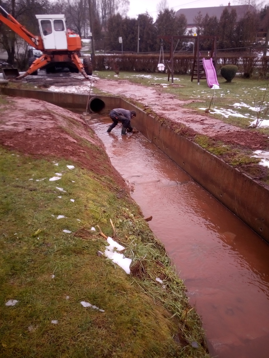 V horní části obce se po letních přívalových deštích projevil problém v korytě potoka. Voda deroucí se do koryta od propustku z pod silnice pod rančem Montara totiž vyryla ve dně potoka hlubokou erozní strouhu a hrozilo, že pokud se nebude situace řešit, podemele v minulých letech zde postavenou opěrnou zeď za čp. 55. Pro řešení této havarijní situace obec povolala firmu LTM Krkonoše, která i v tomto zimním období dokázala část potoka vyčistit od bahna a zpevnit dno velikými balvany, které zamezí vymílání. Práce jsou skončené a zbývá na jaře břehy osít trávou.