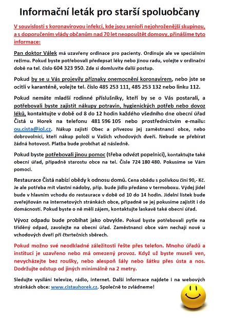 Úvod > Obec > Aktuality > Informační leták pro seniory a nemocné v Čisté