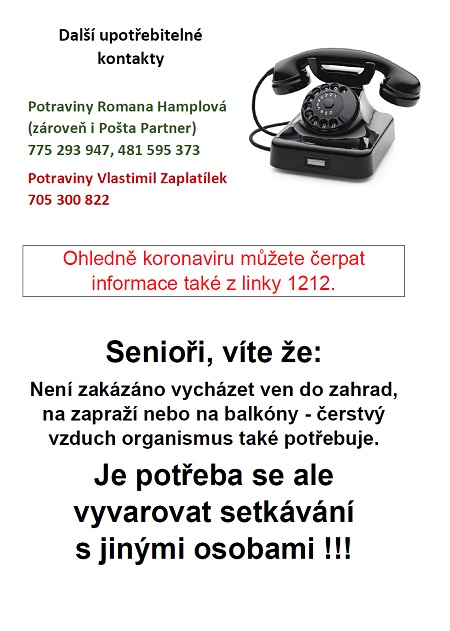 V následujících hodinách proběhne do domácností seniorů v naší obci distribuce letáku tohoto znění: