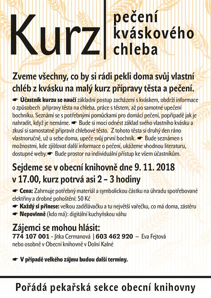 Úvod > Obec > Aktuality > Kurs pečení kváskového chleba v Dolní Kalné