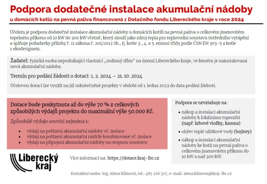 Úvod > Obec > Aktuality > Liberecký kraj nabízí dotaci na akumulační nádoby k topení
