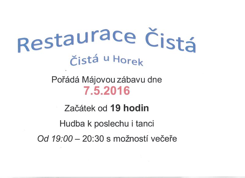 Úvod > Obec > Aktuality > Májová zábava v restauraci Čistá