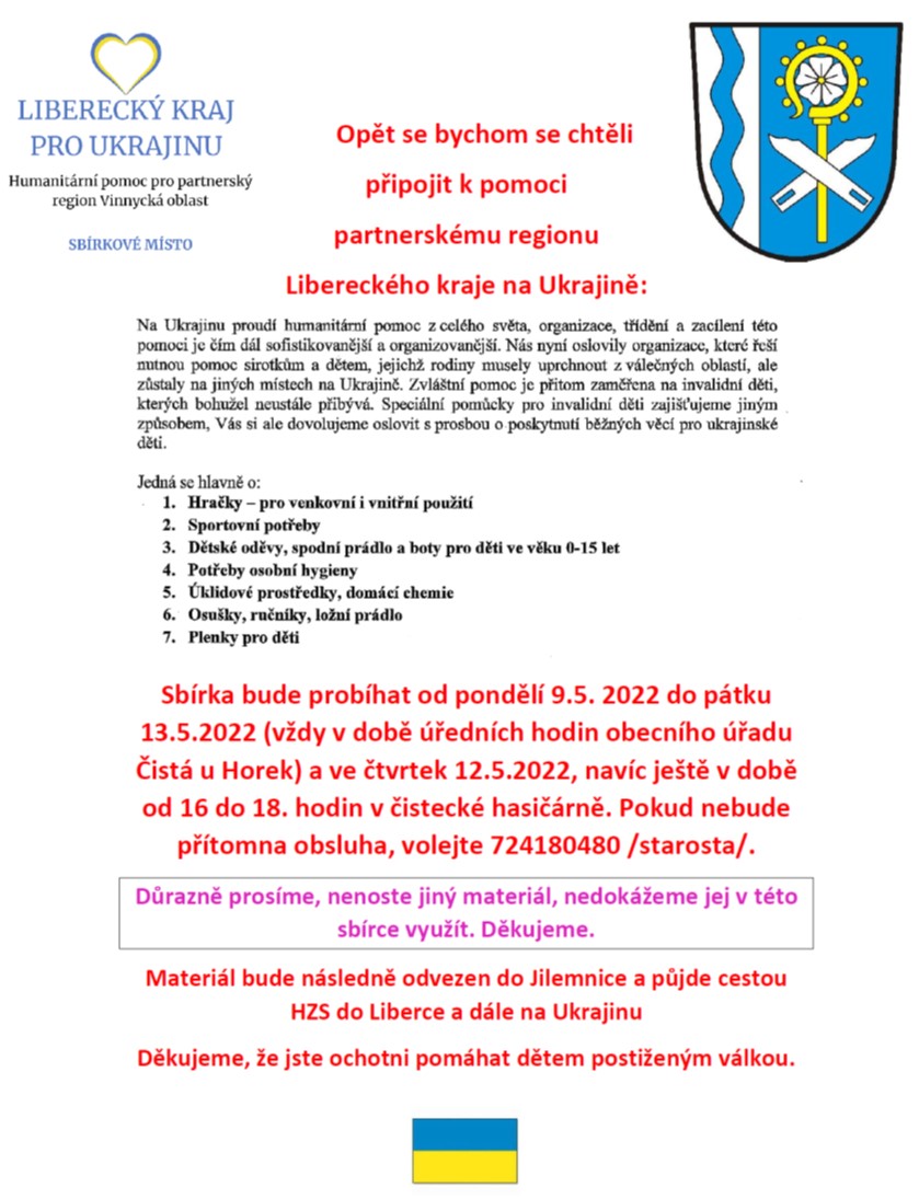 Úvod > Obec > Aktuality > Materiální sbírka pro ukrajinské děti
