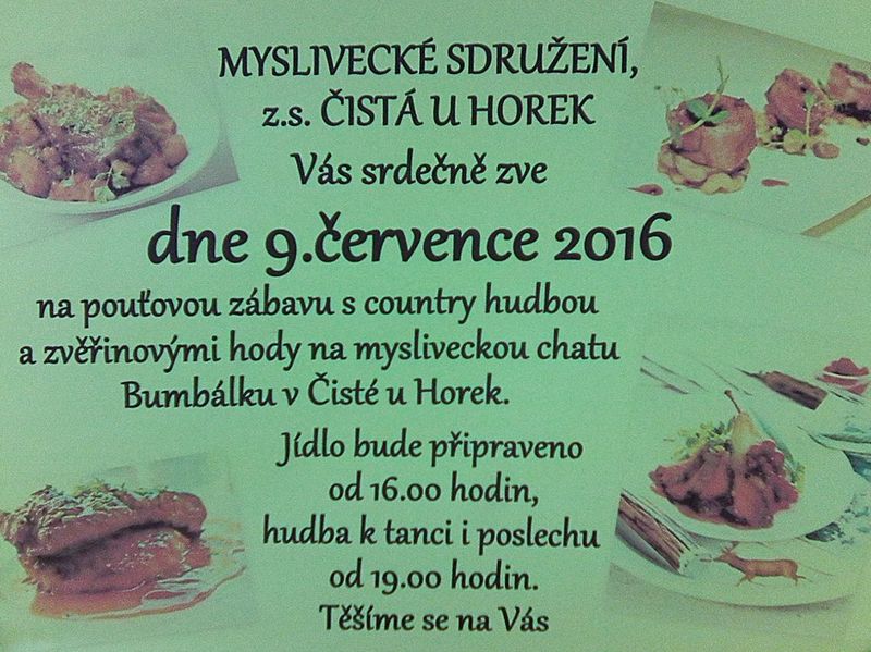 Úvod > Obec > Aktuality > Myslivci zvou na pouťovou country zábavu a zvěřinové hody