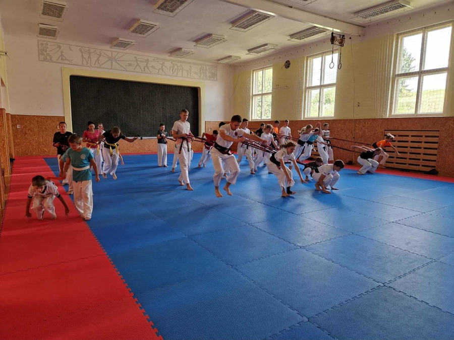 Ani období letních prázdnin neznamenalo přestávku ve využívání obecní tělocvičny. Letos zde kromě pravidelných volejbalových úterků proběhla i dvě soustředění sportovního oddílu Karate-Do ze Dvora Králové. Pod křídly tohoto sportovního spolku pracuje i kroužek karate naší školy a Obec v letošním roce také investovala do nákupu tatami - speciálního povrchu nejen pro tento druh sportu. Soustředění na začátku a koncem prázdnin v naší tělocvičně absolvovalo několik desítek sportovců, s nimiž jste se mohli také setkat při dalších aktivitách na hřišti nebo jinde v obci.