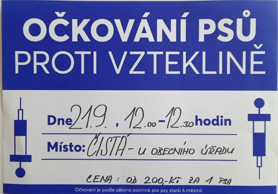 Úvod > Obec > Aktuality > Očkování proti vzteklině bude 21.9.2025