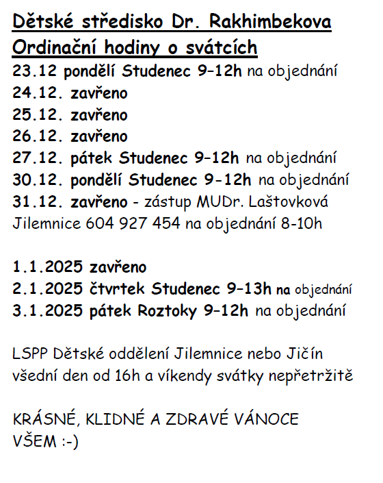 Úvod > Obec > Aktuality > Ordinace dětské lékařky na konci roku 2024
