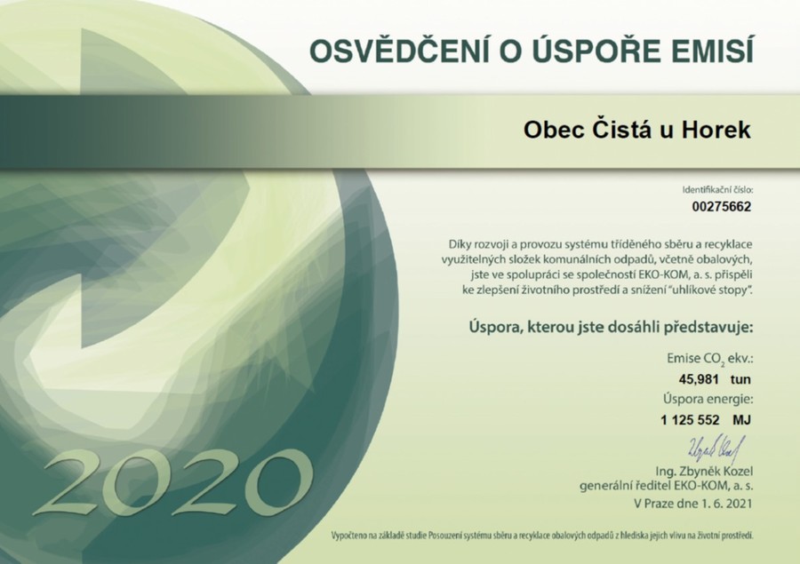 Úvod > Obec > Aktuality > Osvědčení o úspoře emisí