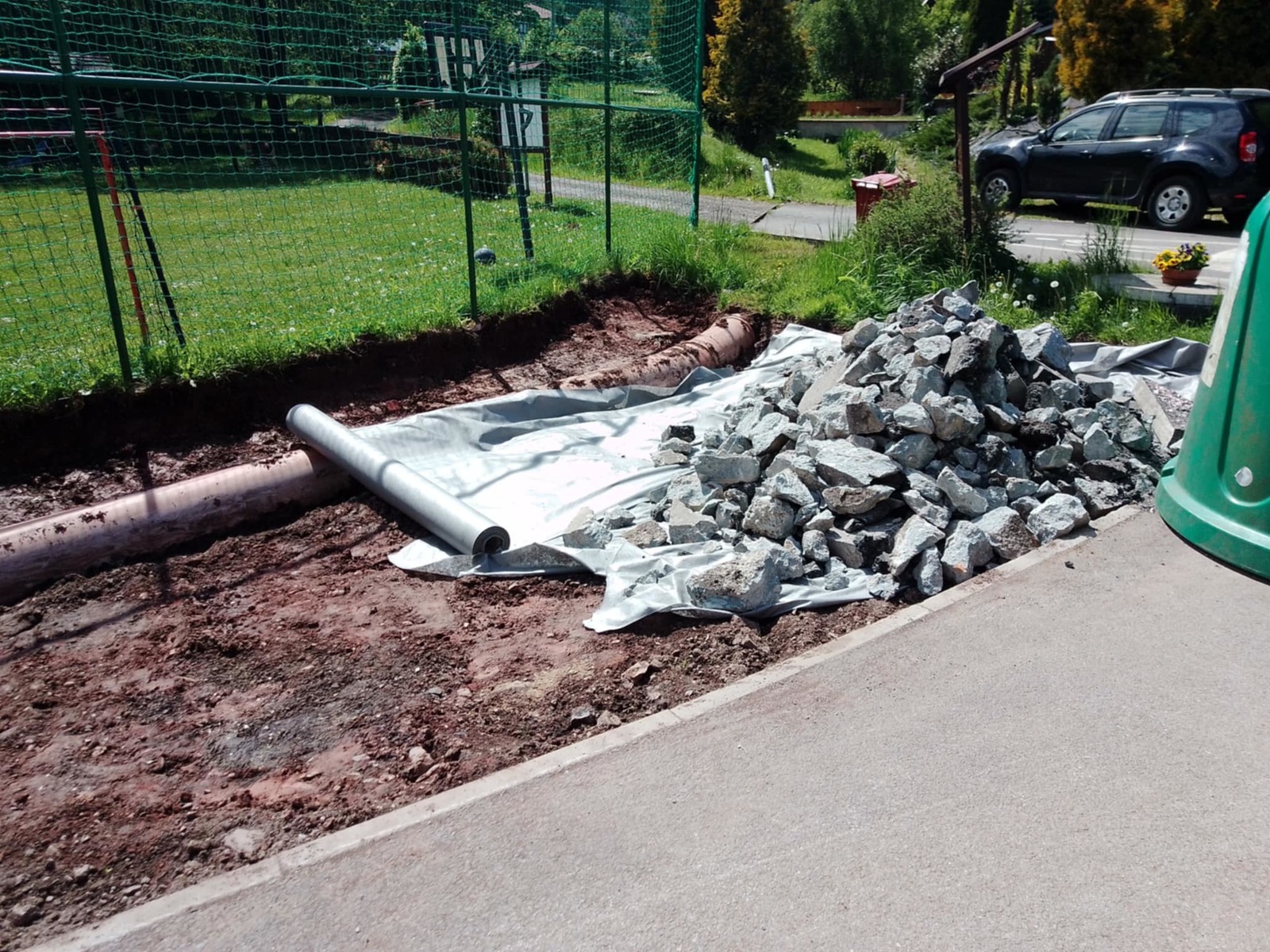 V těchto dnech pokračují zemní práce v Markvaticích, kde u komunitního plácku vzniká zpevněná plocha pro přístřešek nad hnízdem nádob na tříděný odpad. Pracuje zde firma Petr Imlauf, Bělá u Pecky. Nádoby na tříděný odpad jsou dočasně umístěny více v komunikaci, proto při pohybu zde buďte opatrní. Během letošního roku by u plácku mělo vzniknout podobné místo pro tříděný odpad, jako je třeba dole u továrny nebo u školy.
