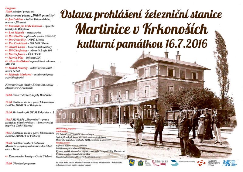 Úvod > Obec > Aktuality > Pozvánka do Martinic na slavnost na nádraží 16.7.2016