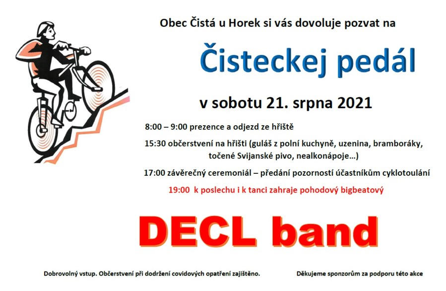 Úvod > Obec > Aktuality > Přijďte se pobavit na Čisteckej pedál s pohodovou kapelou DECL band