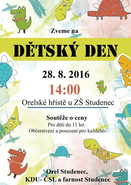 Studenečtí Orlové zvou na akce na přelomu srpna a září. V neděli 28. srpna pořádají Dětský den a v sobotu 3. září tradiční Velký letní bál. Pozvánky najdete v přiložených souborech: