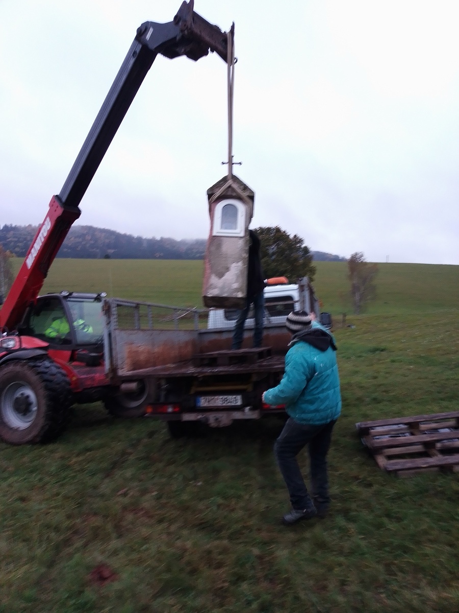 V sobotu 28. října 2023 jsme se pustili do realizace projektu "Výklenková kaplička Čistá u Horek". Obec dlouhodobě usiluje o obnovu drobných památek na svém území a pokud je to možné, využívá k tomu i různé dotační tituly. V tomto případě jde o obnovu kamenné výklenkové tzv. Šmídovy kapličky v lukách pod rybníkem Polňák. Akce, jejíž náklady dosáhnou 239.600,- Kč, realizuje Obec Čistá u Horek s participací Ladislava a Jiřiny Kubátových a za finanční podpory z Dotačního fondu Libereckého kraje. Protože kaplička je ve velmi špatném stavu, byla nyní demontována a převezena do restaurátorské dílny Petra Novotného v Nedaříži, kde projde celkovou obnovou. Restaurované dílo bude vráceno na své místo během příštího roku. Projekt by mělo zakončit žehnání obnovené kapličky na posvícení v roce 2024.