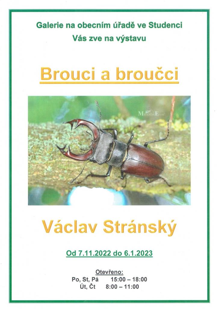 Celoživotním koníčkem našeho rodáka, pana Václava Stránského, žijícího ve Studenci, je entomologie, tedy sbírání a určování hmyzu. Část své sbírky nyní vystavuje v galerii na obecním úřadě ve Studenci:
