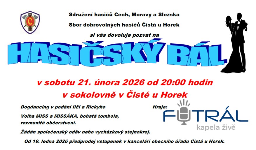 Od pondělí 19. ledna 2026 bude možné v předprodeji zakoupit v kanceláři našeho obecního úřadu vstupenky na letošní Hasičský bál. Do obce pak vyrazí skupinky zváčů ve dvou týdnech před akcí. Vstupné v předprodeji činí 50,- Kč.
